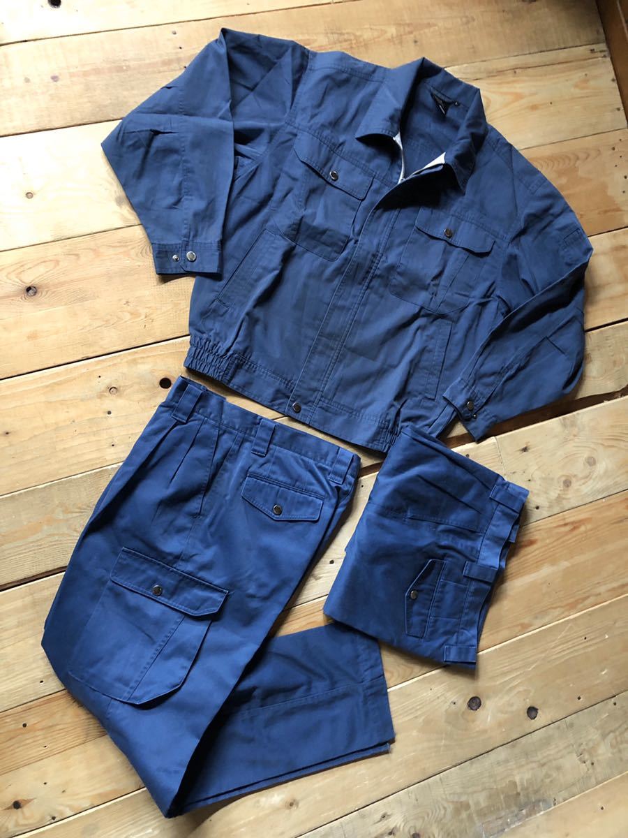 - 秋冬★ネイビー 紺 コン 上下★ズボン2本★セットアップ 作業着 ガレージ★ワーク まとめて パンツ★ネービーメッシュ★JICHODO 予備ズボン