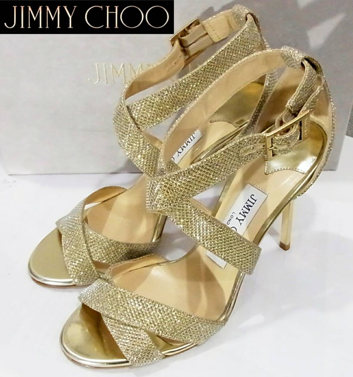 - 送料無料 JIMMY CHOO国内正規品ラメ グリッター ゴールド36(22.5cm~23cm)オープントゥ パンプス金色レザー ハイヒール ジミー チュウ