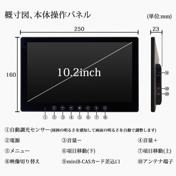 - ヘッドレスト ブラケット 付き 10.2インチ オンダッシュ モニター HDMI入力 USB スマホ 充電 スピーカー内蔵 薄型 リアモニター