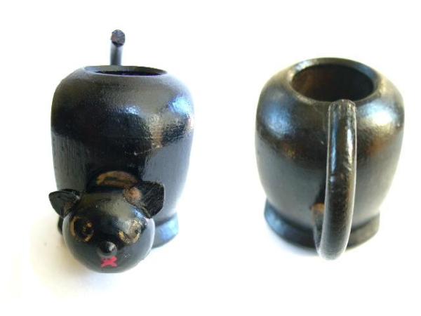 - 50'S[我輩は幸福の猫である*黒猫*木製楊枝入]難有り
