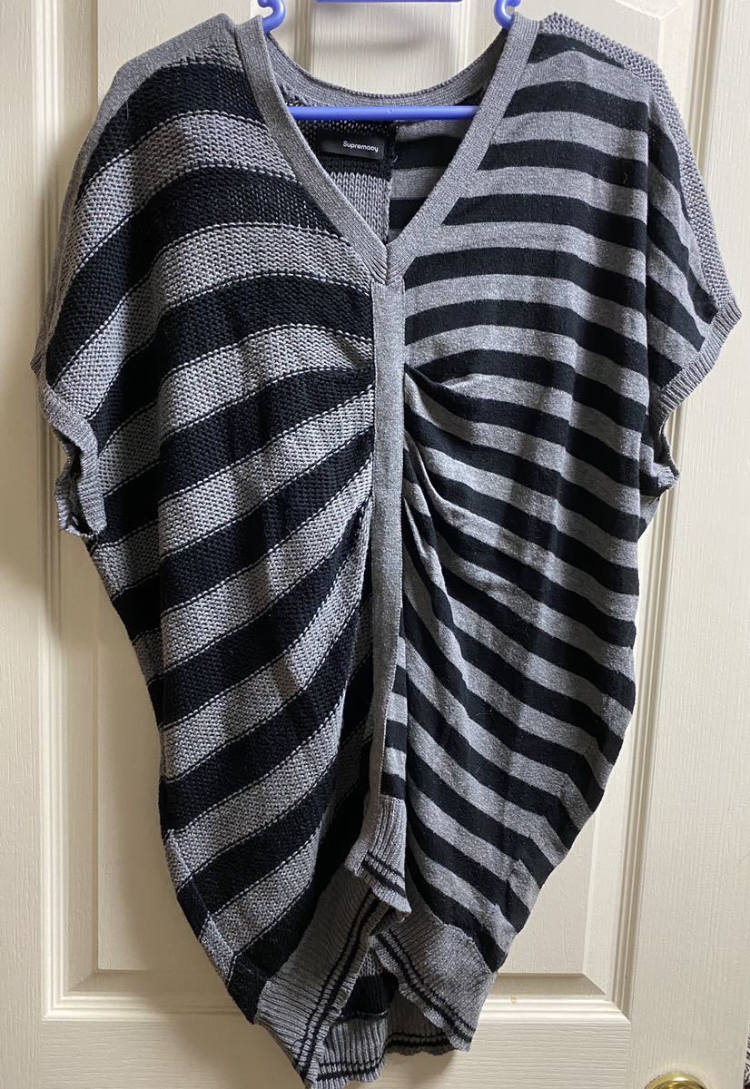 - 1270☆supremacy☆グレー×黒ボーダーサマーニット☆サイズ02中古