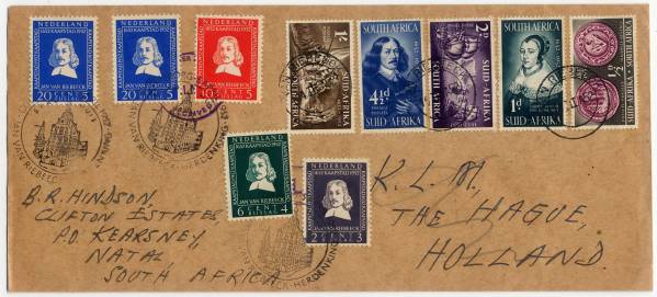 - 1952 南アフリカ→オランダ 行って来る KLM 便特印 混用◆aa-52