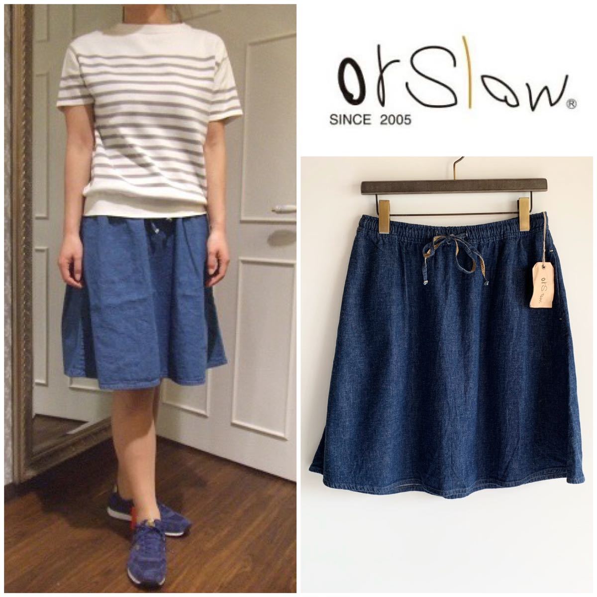 - 新品未使用 orSlow オアスロウ ウエストギャザーデニムスカート インディゴ サイズ1 / S 日本製 フレアスカート Strato