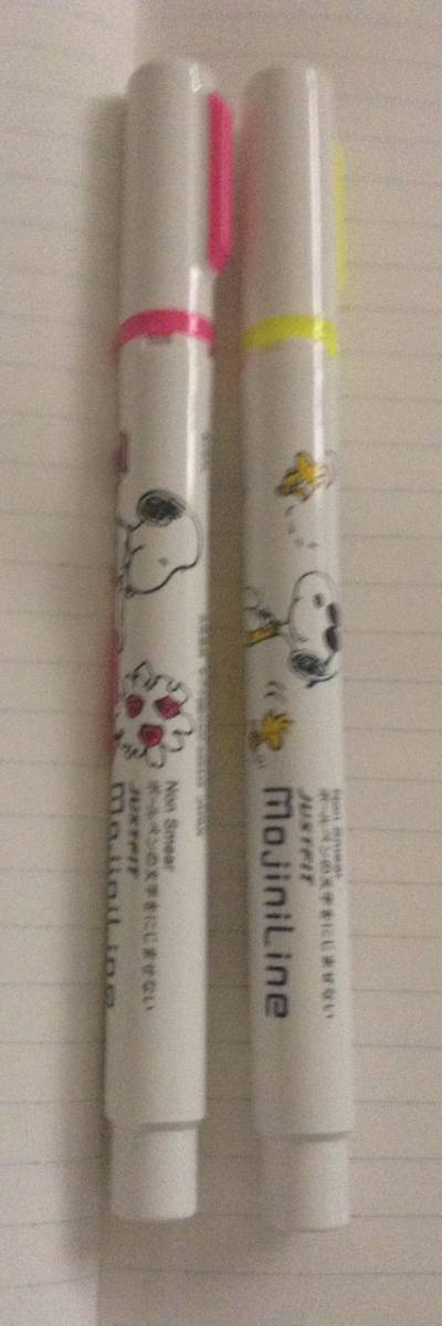 > ジャストフィットモジニライン♪ゼブラ♪蛍光ペン♪限定 ♪ボールペンの文字をにじませない♪ スヌーピー♪ピーナッツ♪黄色1本♪ピンク1本