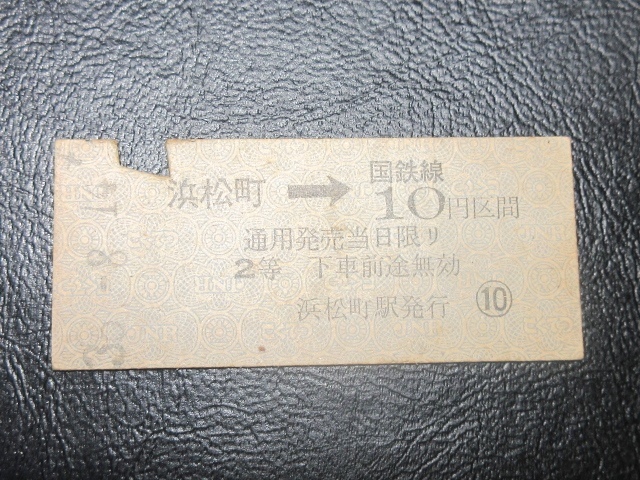 - ★国鉄乗車券・硬券『昭和36年8月14日・浜松町→国鉄線10円「不自然な10000番」矢印式乗車券』キップ切符・レアコレクション★JNR1006