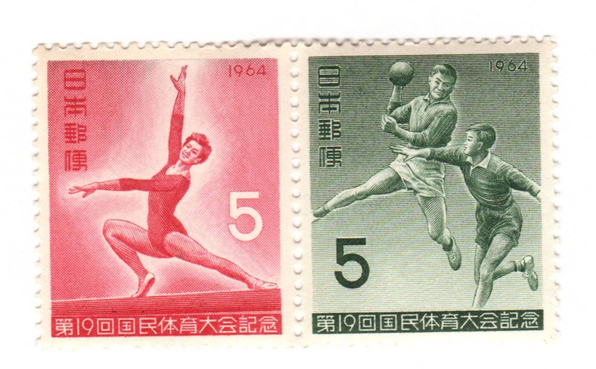 > 昭和39年1964「第19回国体記念/平均台~ハンドボール」【連刷5円切手2枚】未使用【送料無料】「熊五郎の切手」00800280