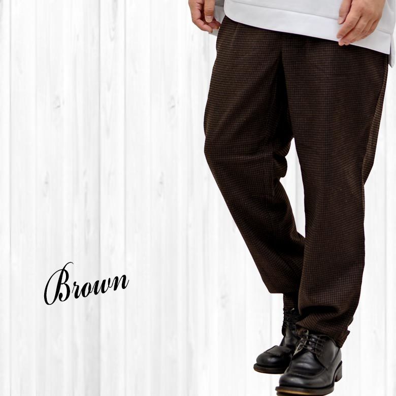 - 千鳥格子柄トラウザーパンツ メンズ スラックス74361新品ブラウンM