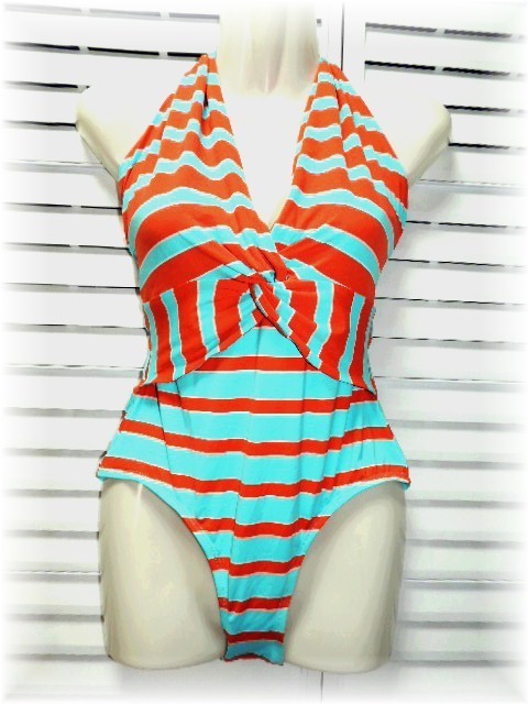 - ALLIHOP ワンピース水着 S (海外製品のSのためか大き目です)M位 オレンジ×水色