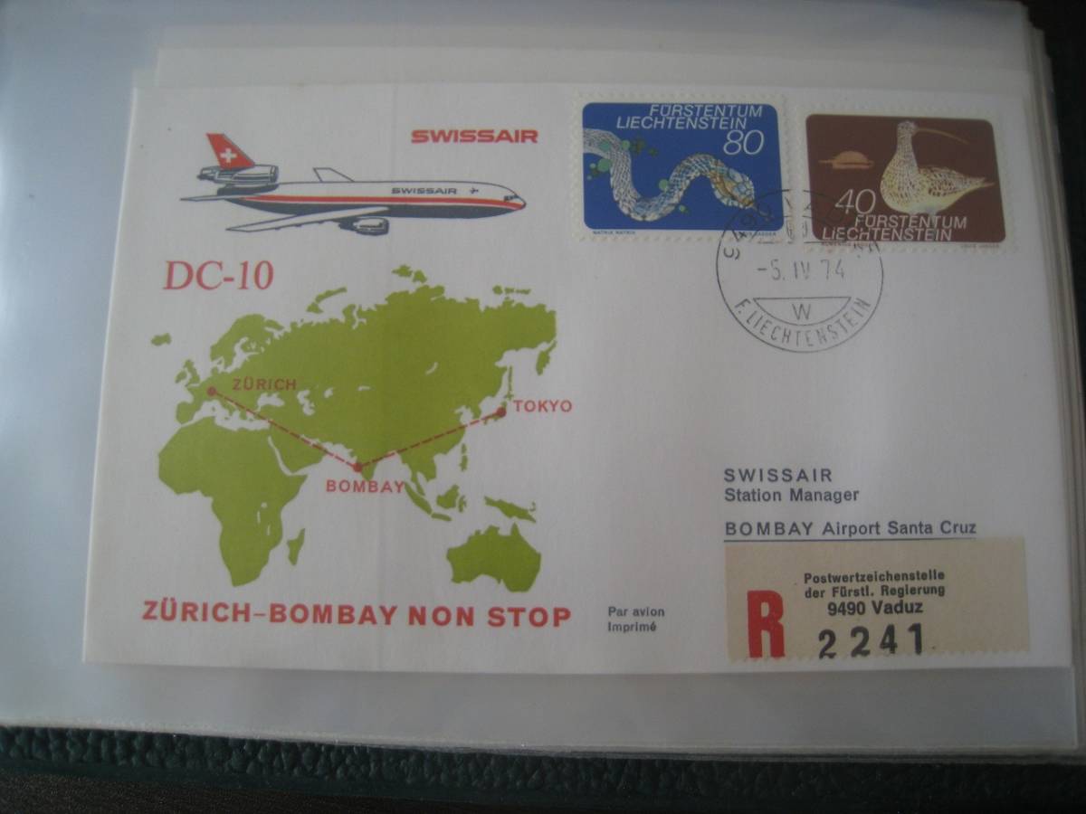 - ★F234 FDC/FFC初日カバー1974 スイス航空 DC-10 チューリッヒ - ボンベイ(ムンバイ) -