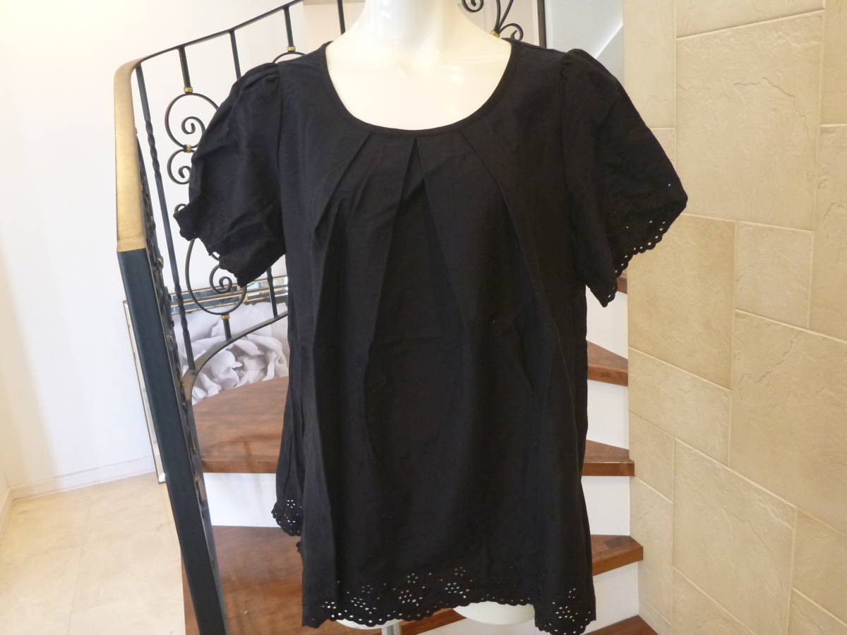 - 新品 REI RISEE ★黒ブラック 半袖 刺繍 オーバーブラウス L相当