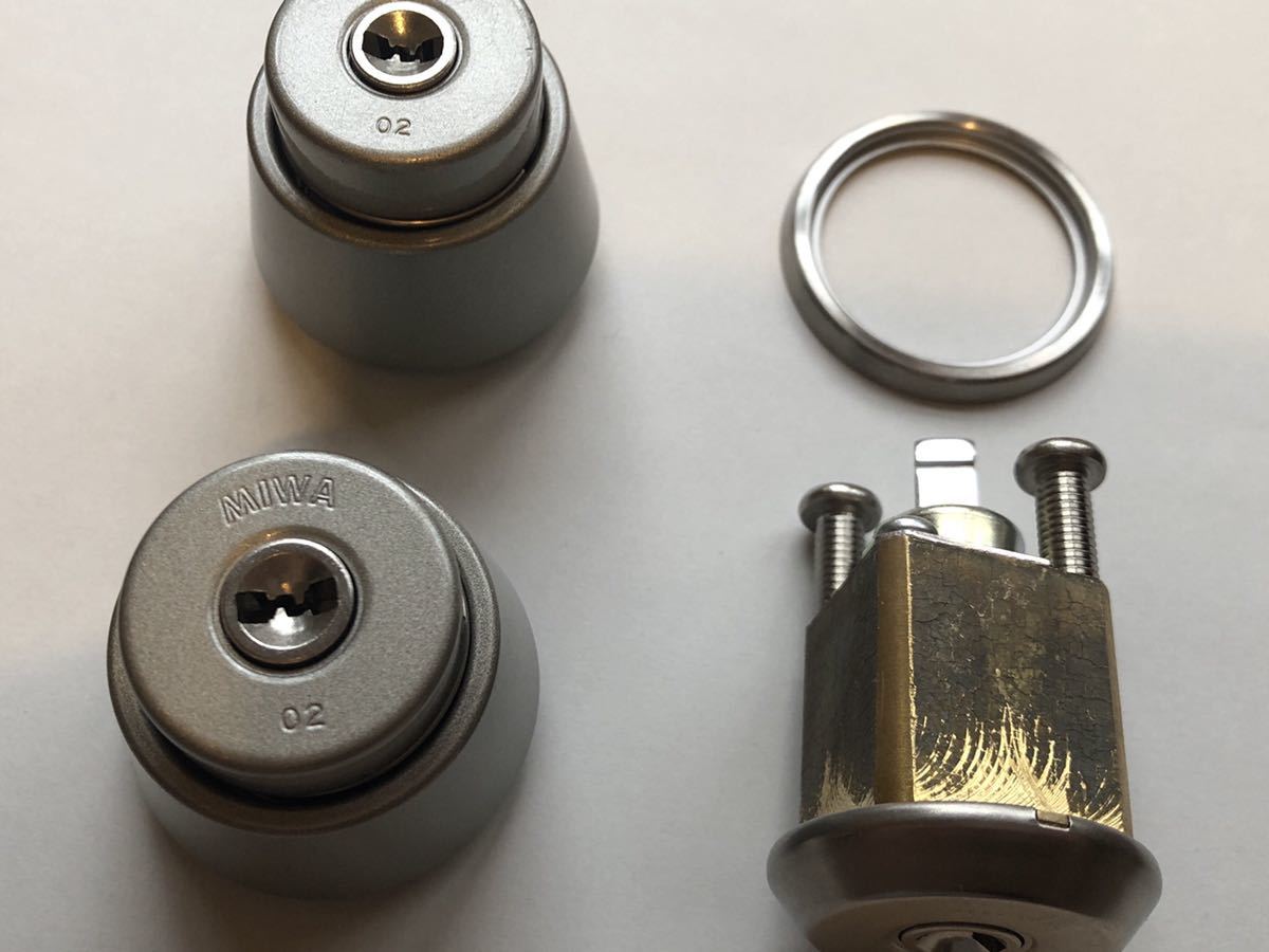 - MIWA 鍵 取替え 交換用シリンダー(2個セット)+面付補助錠 標準キー4本付き 塗装シルバー色