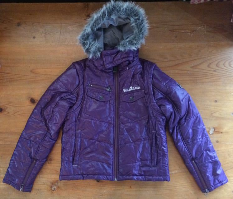 - BLUE CROSS★中綿ジャケット★ベスト★M★パープル★帽子&袖 取外し可能