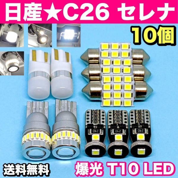 - 日産 C26 セレナ 適合 LEDバルブ ウェッジ球 T10 LED ルームランプ+ナンバー灯+バックランプ+車幅灯 ホワイト 10個セット