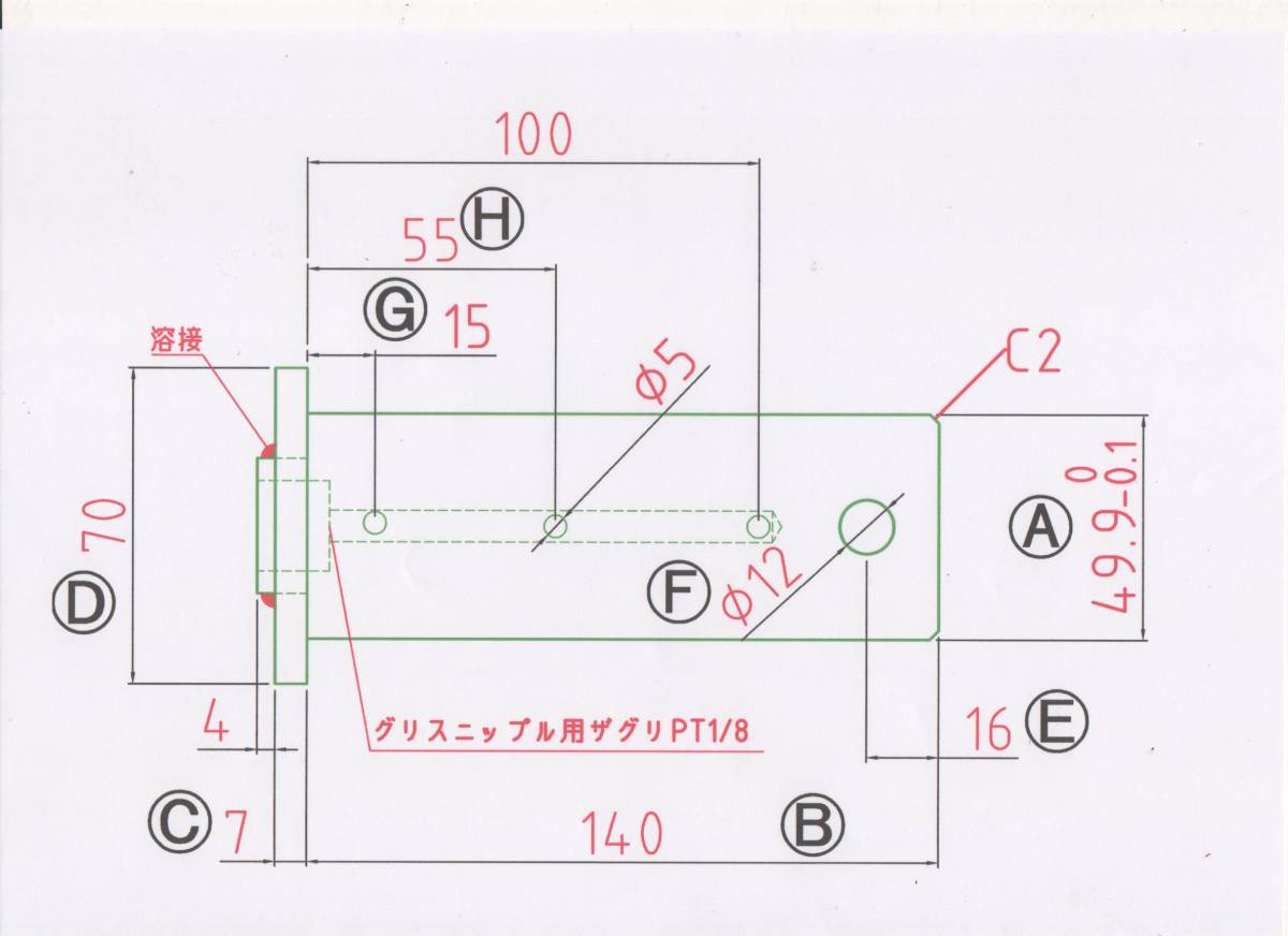 - NO 321 φ50用 溶接ツバ下140mm バケットピン