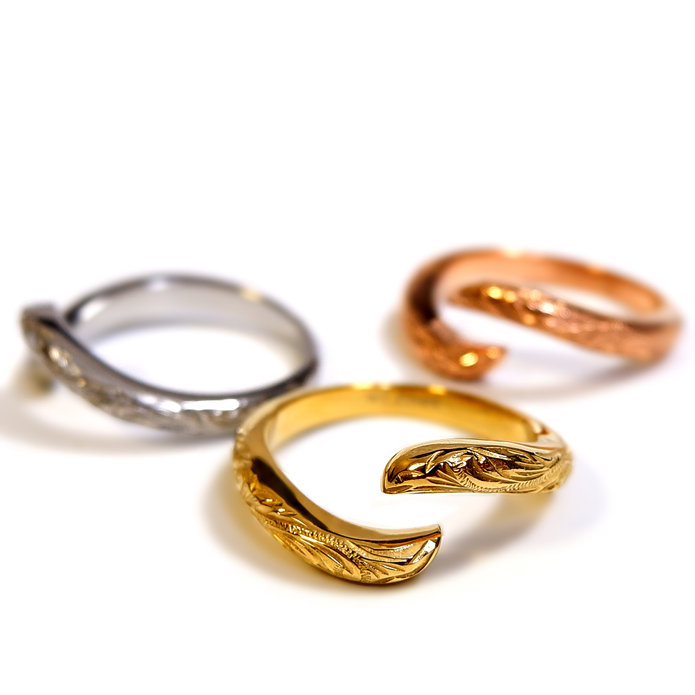 - ★人気★ハワイアンジュエリー★アレルギー&温泉&海水浴ご使用OK★ステンレスリング★ゴールド&ピンクゴールド&シルバー&スクロール波★