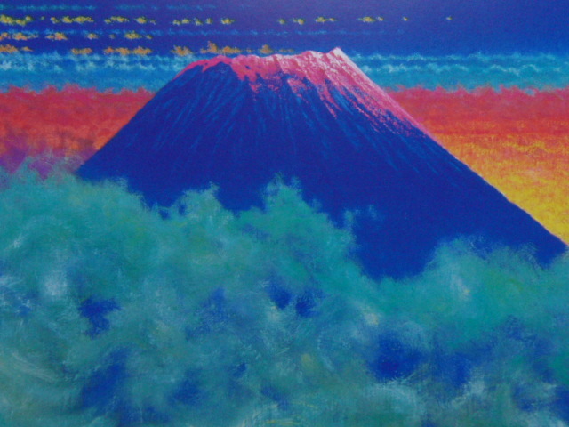 - 下浦康瑞、【残輝富嶽】、希少な額装用画集より、新品額装付、状態良好、送料込み、富士