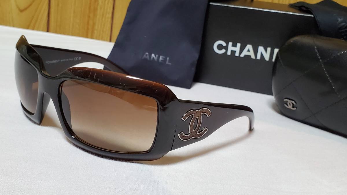 - 正規 レア 激レア セレブ愛用 シャネルCHANEL ココマークロゴサングラス エキゾチックレザー調エンブレム シルバー 濃茶 付属有★ 男女兼用