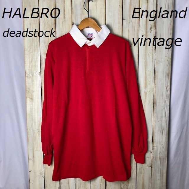> deadstock ヴィンテージ 英国製 HALBRO ラガーシャツ 44 ハーブロ オールド ヨーロッパ ユーロ レッド 赤 ●26