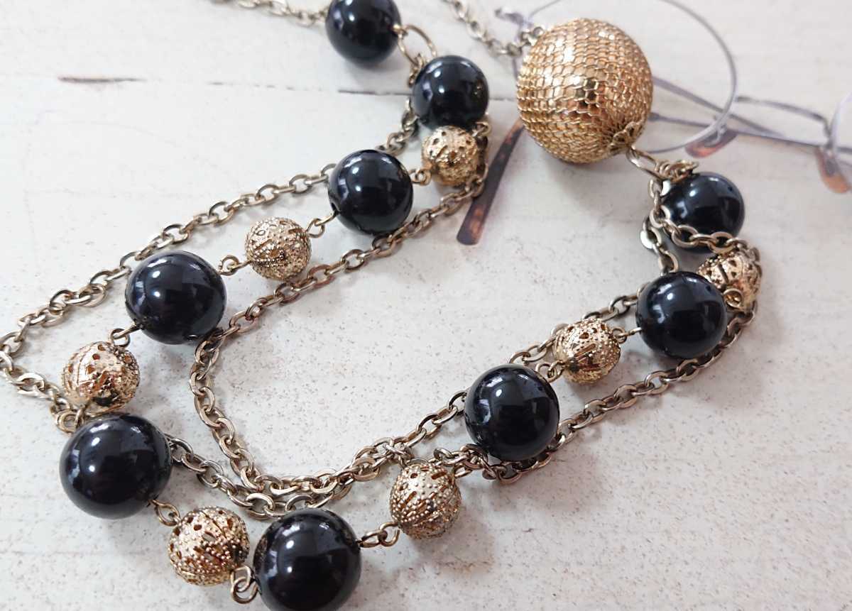 - □ゴージャス&エレガント□ゴールドカラーの透かし彫りビーズ&大玉黒ビーズの3連ネックレス□パーティーにも□