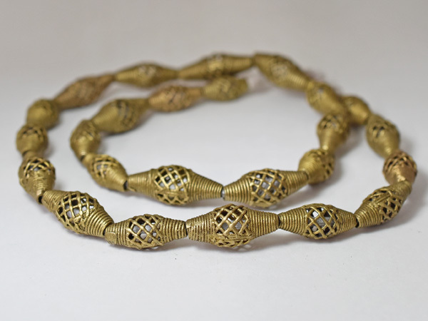 - ●わくわく とんぼ玉★ドゴン真鍮格子状両円錐型ビーズ一連 蜻蛉玉,トンボ玉,ブロンズ【送料無料】【2012】【HB19005】