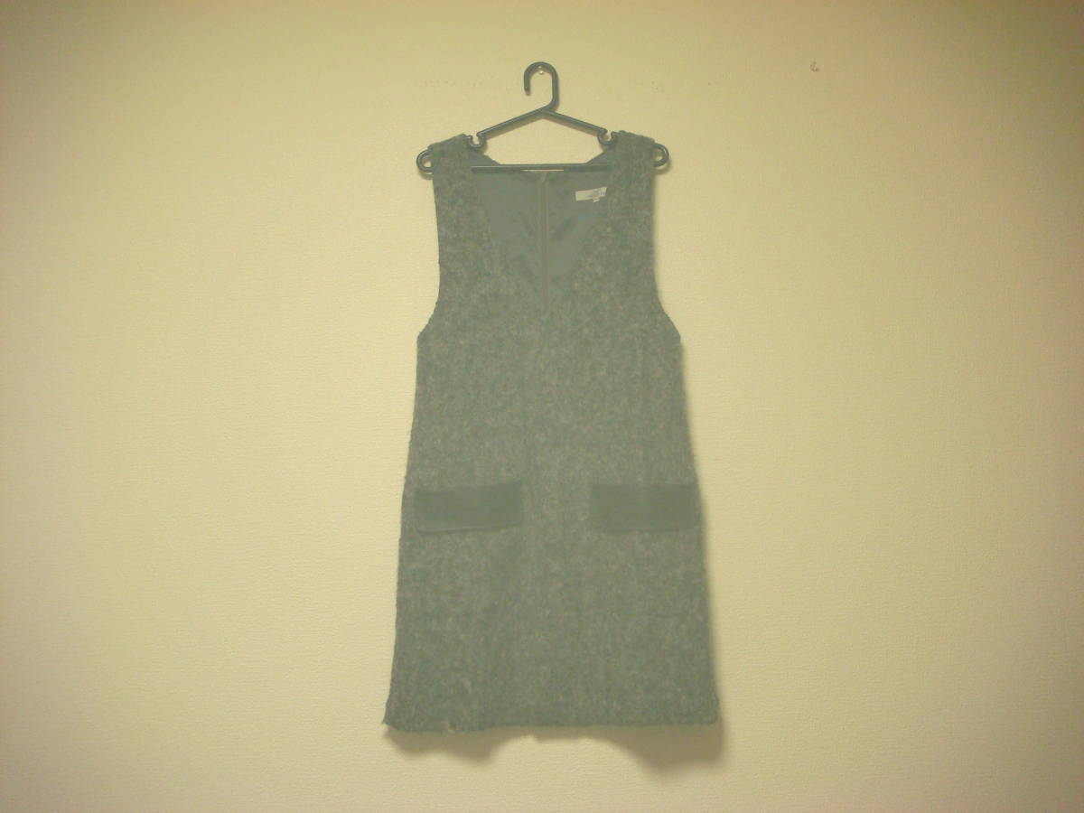 - ビアッジョブルー 起毛 合皮デザイン ジャンパースカート ワンピース グレー 美品 1
