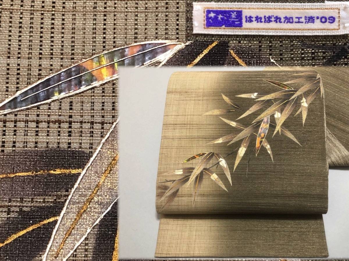- I25 未使用 袋帯 お太鼓柄 さが美 誂え ガード加工 金糸 ラメ 暈し 螺鈿 笹文 長4m61cm 長尺