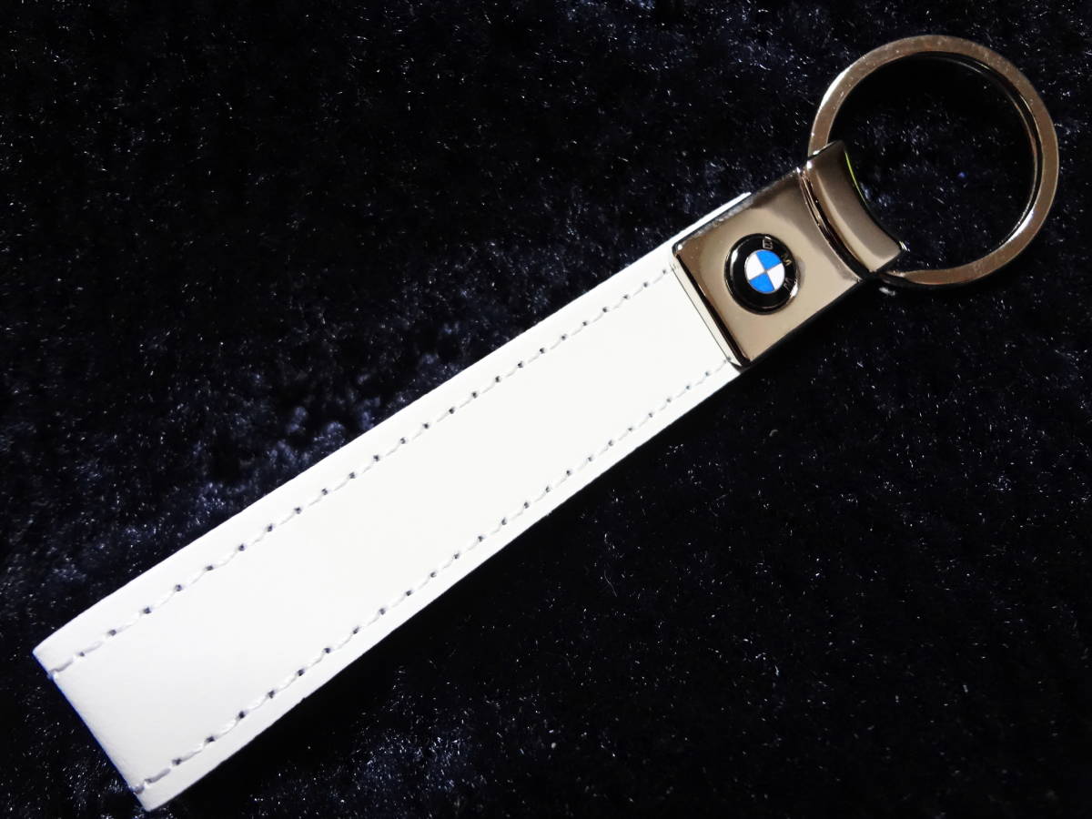 - 希少!BMW 純正 正規品 本革製キーホルダー 非売品! ホワイト (メッキシルバー)