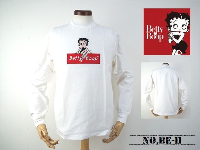 > 【送料無料 25%OFF】Betty Boop ベティ ブープ 刺繍仕様長袖Tシャツ -BOX BETTY- BE-11 WHITE_Mサイズ