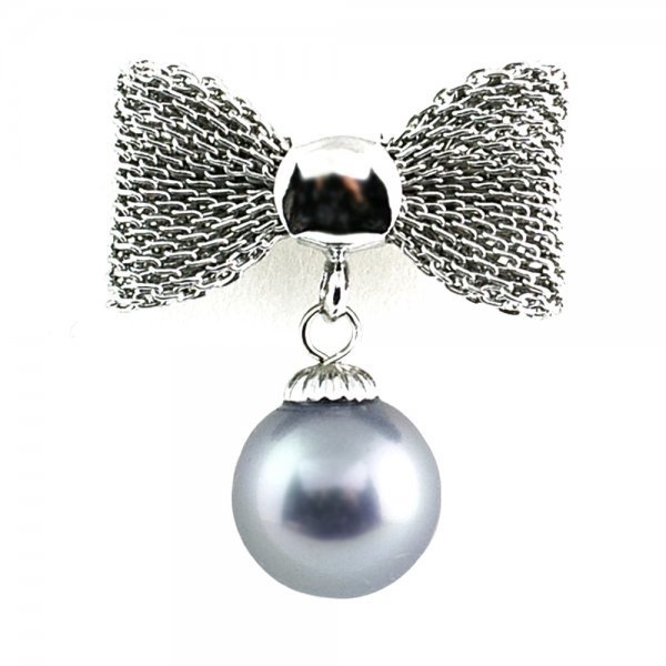 - [ロノティコ]Ronotico リボンブローチ 国産 磨き貝パール 10mm ラペルピン グレー swb-43