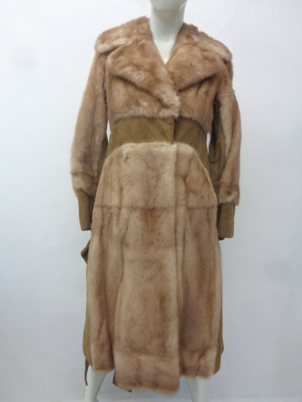 - カナディアン パステル・ミンク&スエード毛皮ファー・コート アメリカンサイズ0 ベルトつき