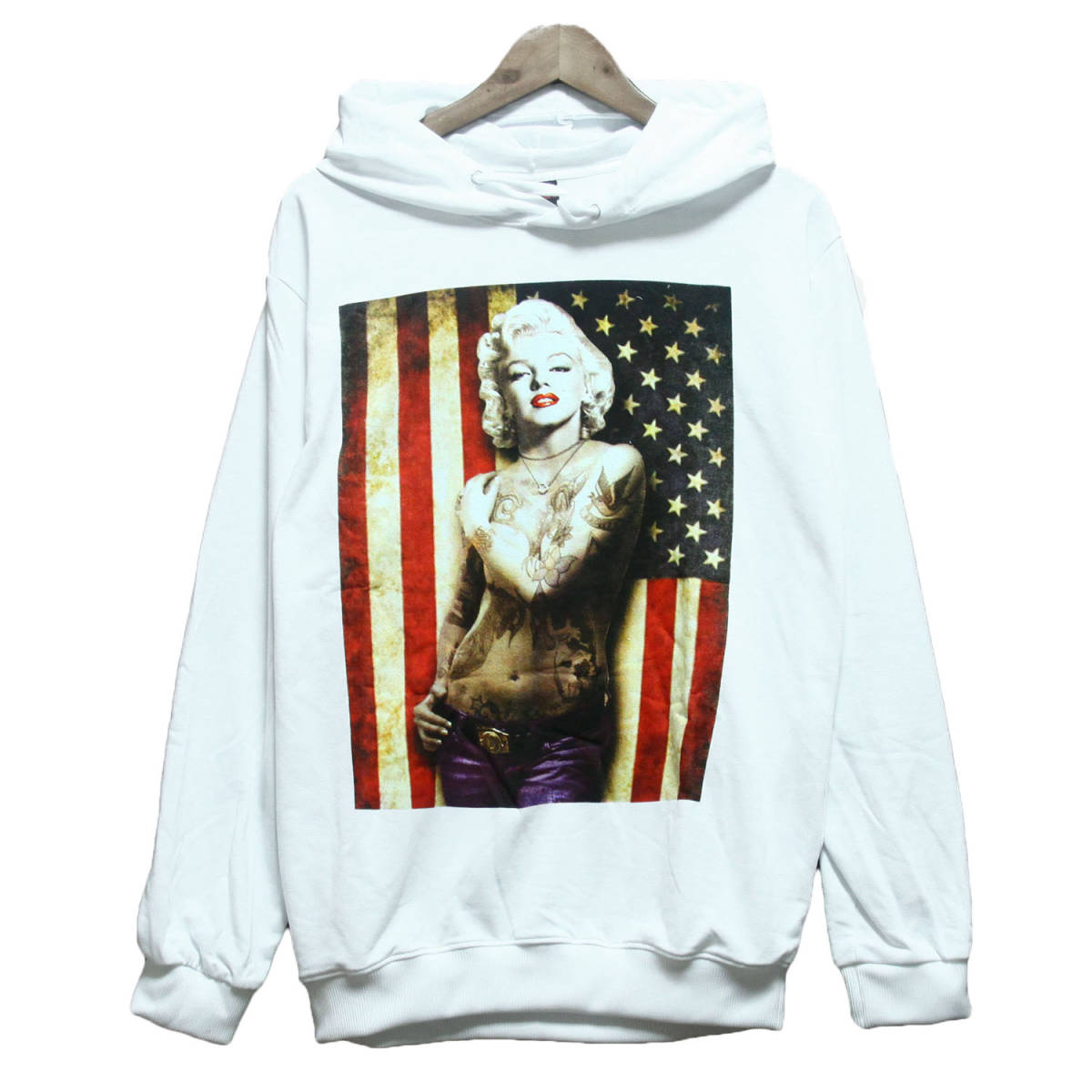 - プルオーバーパーカー メンズパーカー セクシー マリリンモンロー ストリート系 ダンス スウェット フード付き 薄手 春物 ★pk0020-wht-m