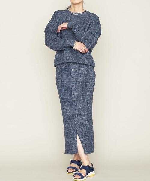 > ASTRAET【アストラット】12G フロントボタン リブ レディース タイトスカート(ロングスカート)FREEサイズ☆スカート丈 86cm ブルー系