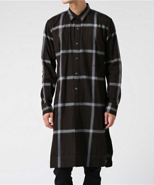 - ミハラヤスヒロ ブラック ロングチェック シャツ サイズ48 定価50600 MIHARA YASUHIRO