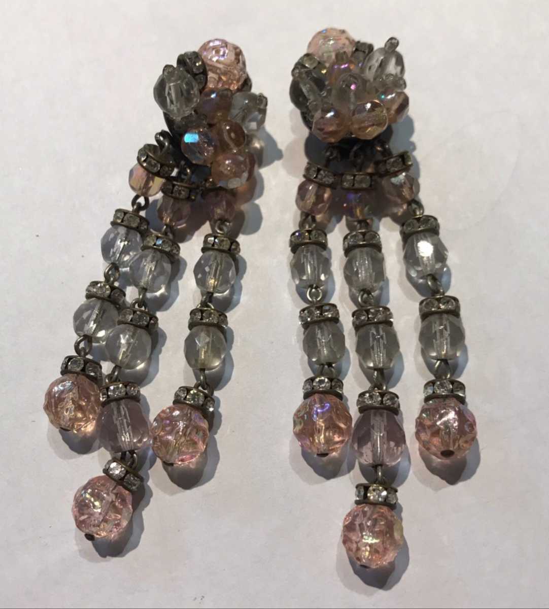 - 【アクセサリー】ガラスビーズのイヤリング ガラスビーズとラインストーンのデザイン製 アンティーク