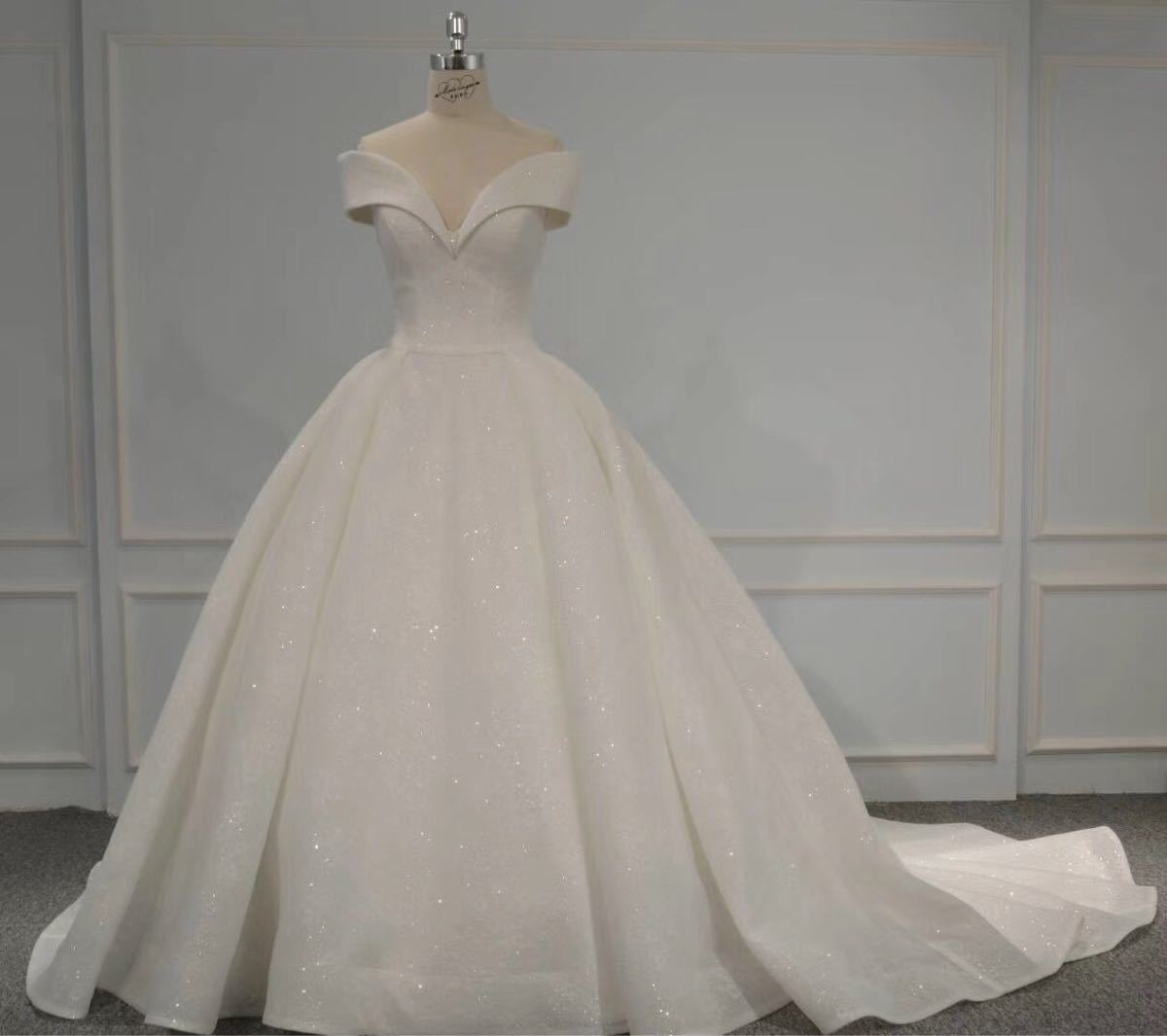 - 王室豪華オフショルダー花嫁ウエディングドレス ミカドシルク サイズオーダー無料 結婚式 海外挙式 色変更無料 高品質 高度の縫製技術