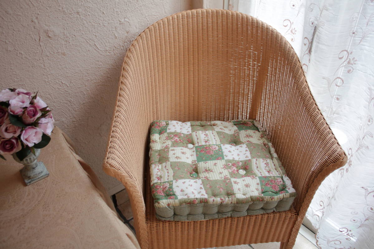> PAY3・A-ST2*シートクッション*約40X40X7*グリーン*薔薇柄*ローズ*パッチワーク*中綿ポリエステル100%*花柄*厚手*可愛い*おしゃれ