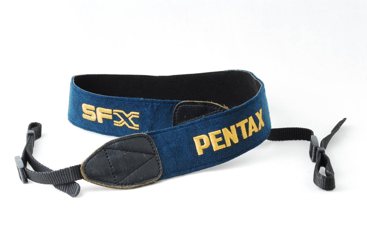 - ☆Pentax ペンタックス SFX カメラ ストラップ 紺色(ネイビー)×金色(ゴールド) 刺繍文字 純正 フイルムカメラ ショルダー Camera Strap☆