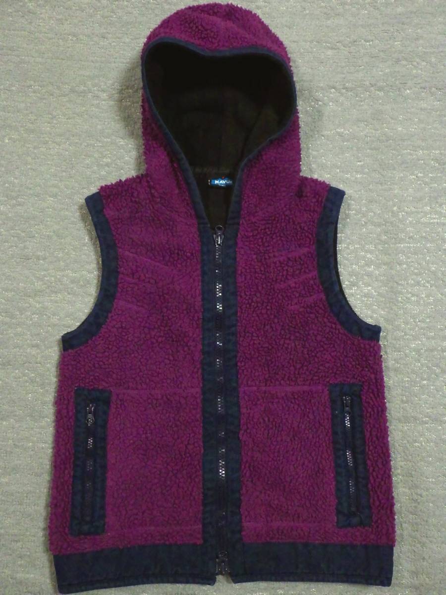- KAVU フード付き フリース シャスタ ベスト レディース・Sサイズ 起毛フリース&ダック生地 紫 カブー