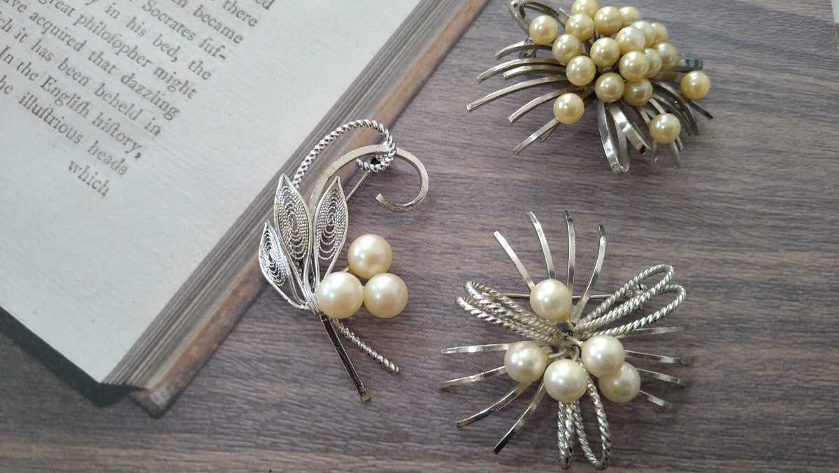 - □パールビーズ×シルバーカラーのブローチ3個セット□