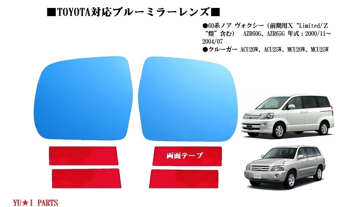 > トヨタ クルーガー 60系ヴォクシー ノア前期 30系エスティマ アルファード前期 ドアミラー ブルーミラーレンズ