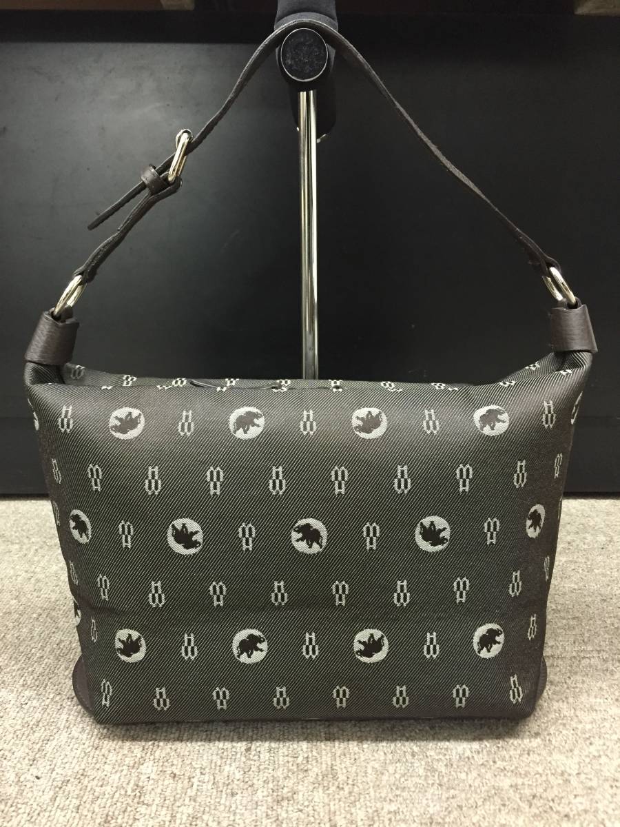> 美品!格安!ハンティングワールド 総柄 総ロゴ キャンバスレザー ワンショルダーバッグ ハンドバッグ