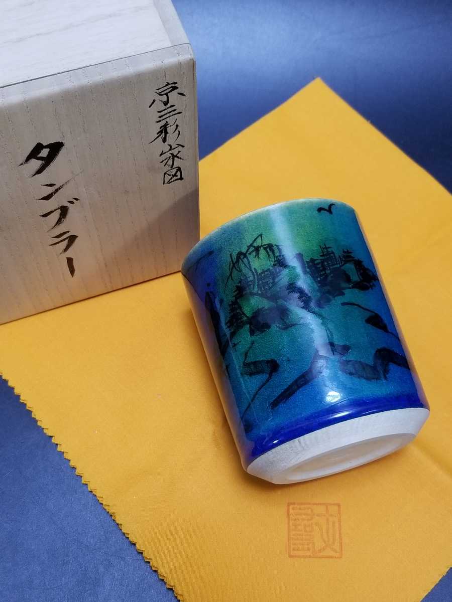 - 【未使用】 京三彩山水図 タンブラー 加藤 丈尋 京焼 清水焼 丈夫釜 高さ約10㎝ 和食器 陶器 湯呑 フリーカップ