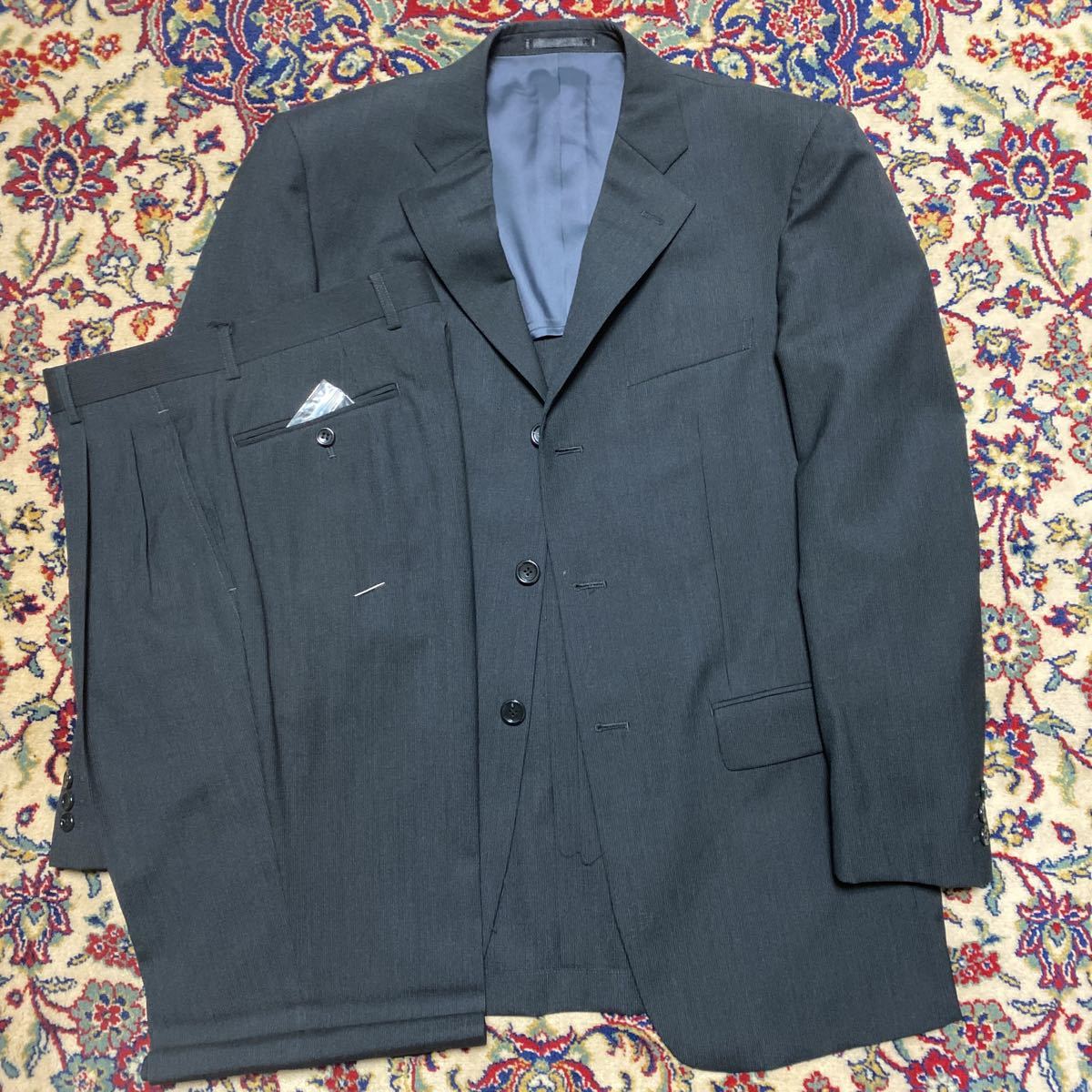 - 新品 未使用 激安 タグ付き ウール94% シングルスーツ 上下セット サイズY6 ブラック ペンシルストライプ サラサラ生地