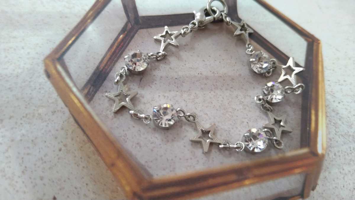 - □シルバーカラー・スター&大粒ラインストーンブレスレット□