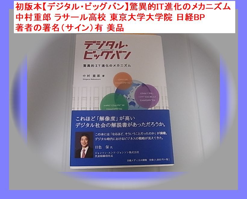 初版本【デジタル・ビッグバン】驚異的IT進化のメカニズム 中村重郎 東京大学大学院 日経BP 著者の署名(サイン)有 美品