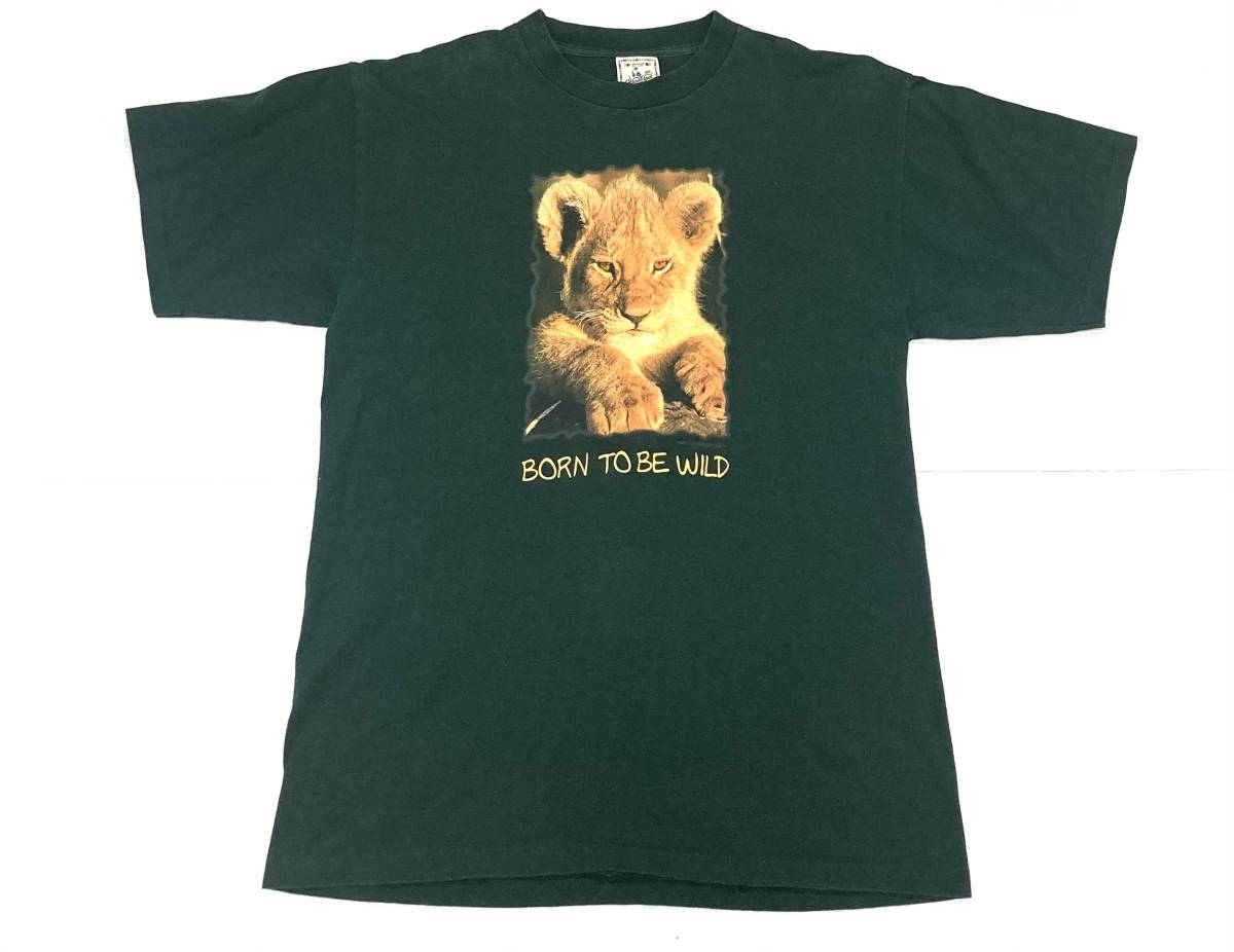 - USA製 BORN TO BE WILD ライオン Tシャツ 緑 L ピクチャ