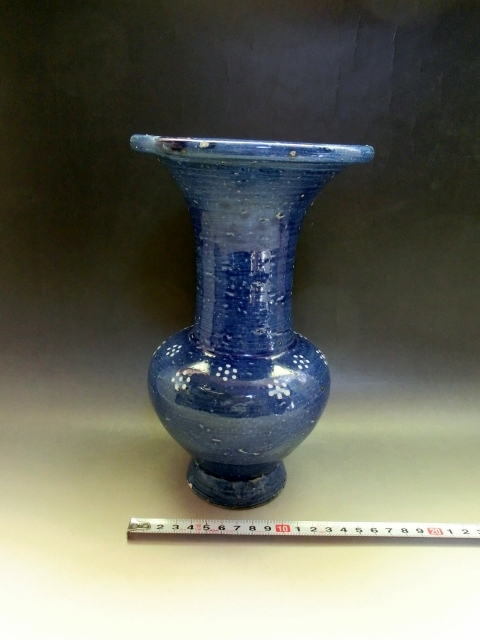 - 花瓶■青釉七点花文口広瓶 古い花器 花生け 染付 古玩 唐物 中国 古美術 時代物 骨董品■