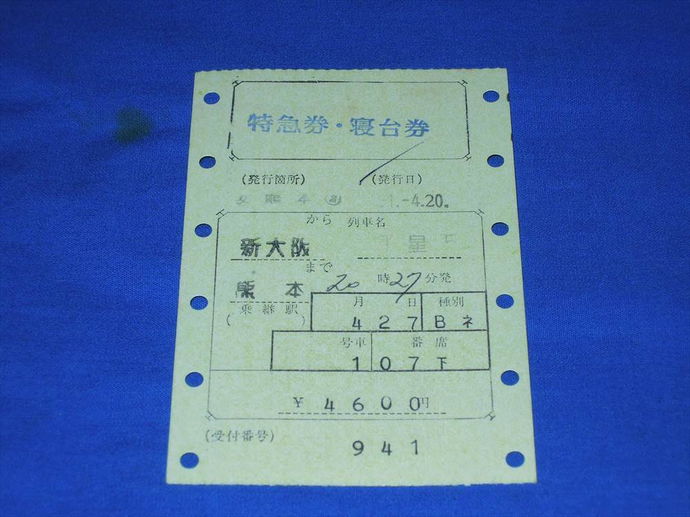 - T172bg 国鉄新大阪→熊本明星5号特急券・B寝台券 熊本交通公社発行(S51)