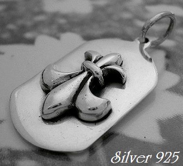 - シルバー925銀の立体フレア百合の紋章プレート ペンダント/α silver