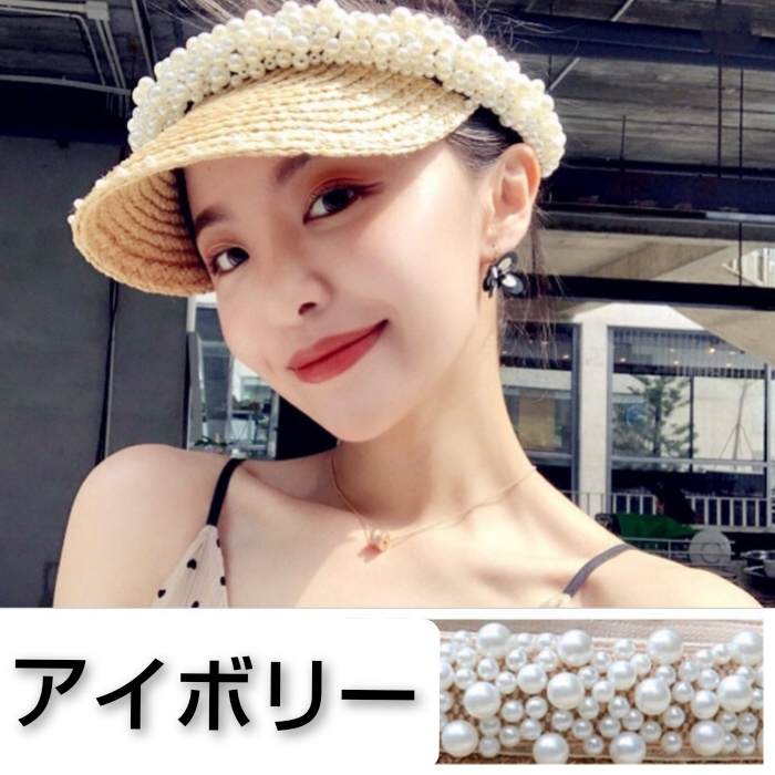 - 【未開封品】真珠ポイント可愛いサンバイザー・アイボリー/日差し対策/紫外線対策☆新品未使用品